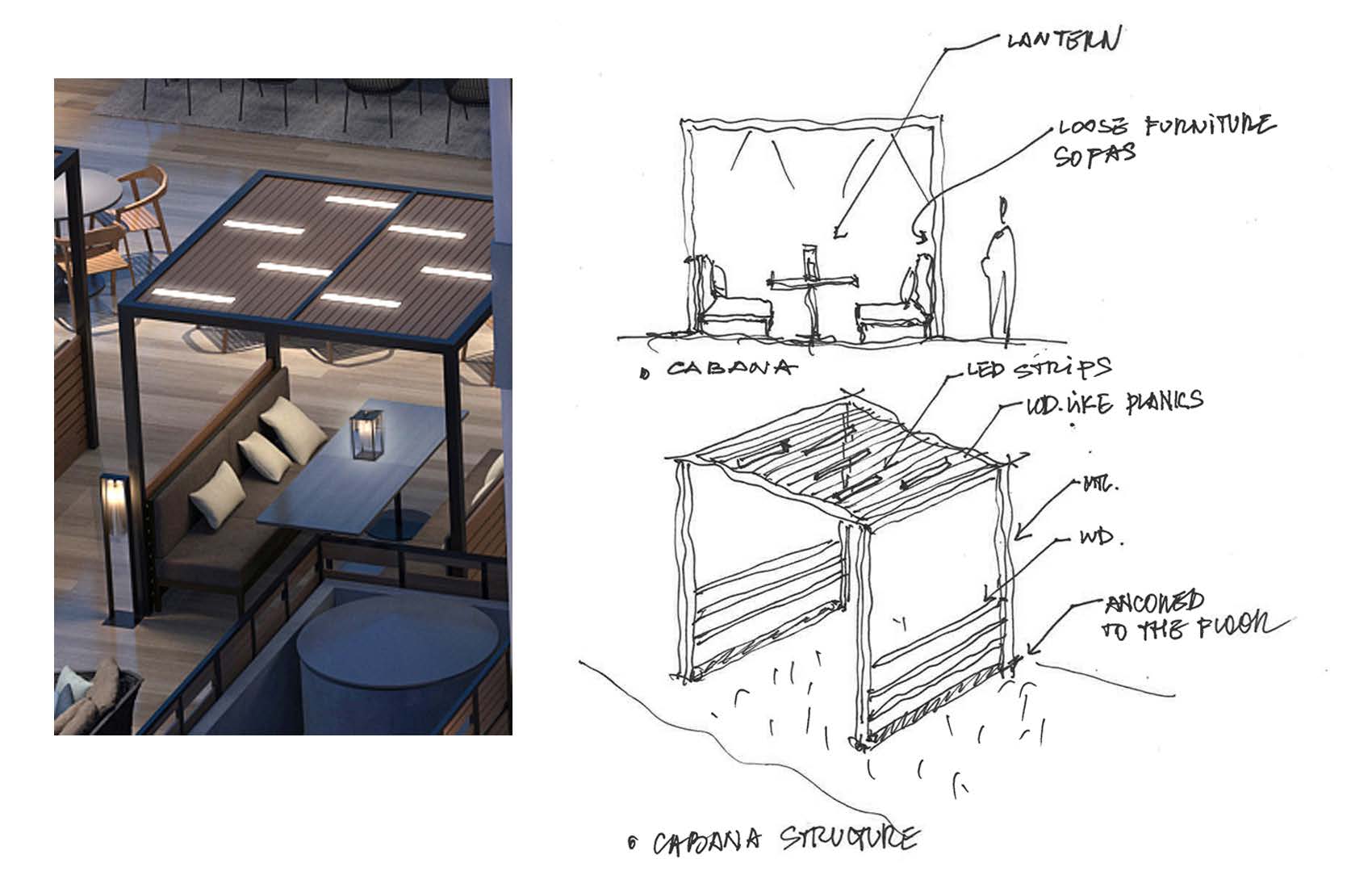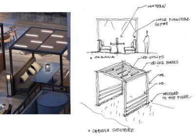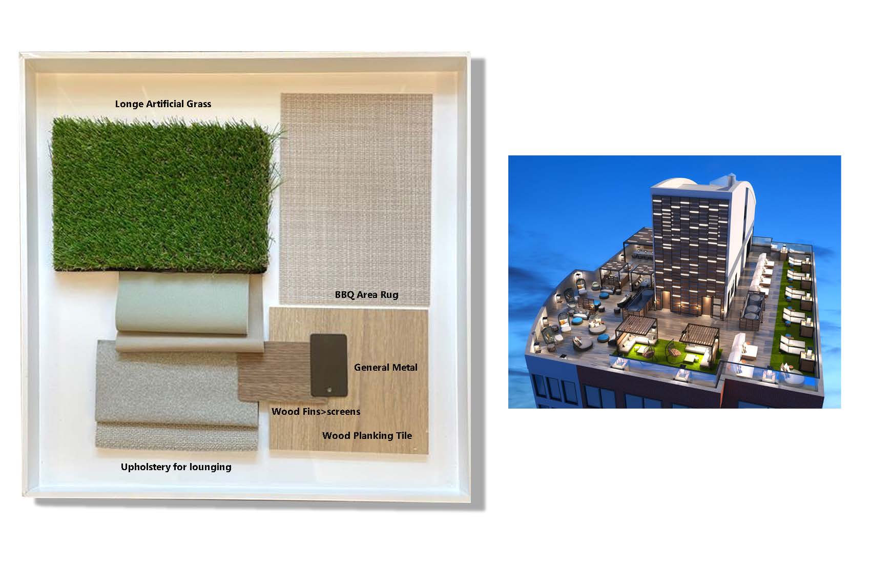 41st River Terrace Roof top design Elevator Lobby Concept Images Cabana Concept Rooftop Lounge Concept Rooftop Outdoor Furniture Rooftop Materials Palette Rooftop Aerial View