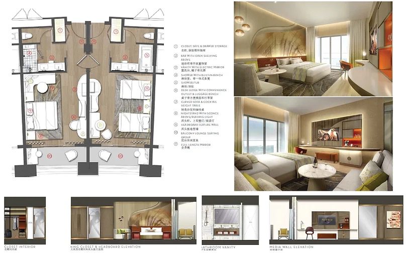 The Hard Rock Dalian will provide alluring accommodations for a diversity of interest. The new hotel features five floors consisting of approximately 200 guest rooms ands sweets, meeting rooms, ballroom, rock spa, multiple and food and beverage outlets, rock shop and a dynamic lobby, lounge and bar, facilities