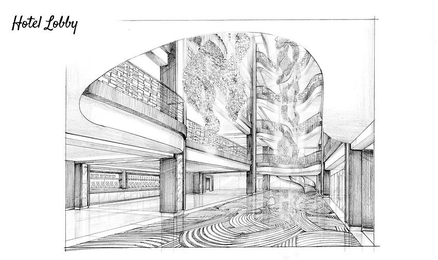 Manila Hotel, Malaysia Lobby studies Facelift of an existing space by using new contemporary elements such as lighting, floor finishes and perimeter wall finishes. Hotel Lobby Lighting Concepts Light and Screen Designs